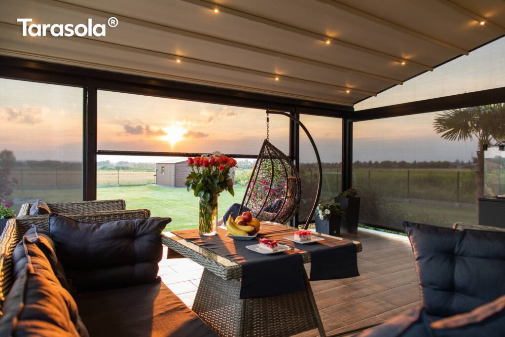 eleganckim zadaszeniem, które świetnie sprawdza się jako przedłużenie strefy